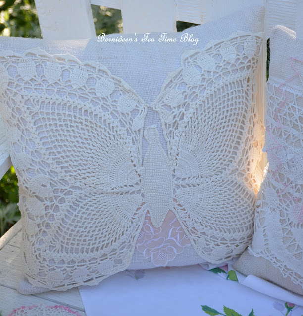 Those of you who are familiar with my blog know how I love vintage linens. The table topper is just what was left from a bedspread out of which I made pillows.