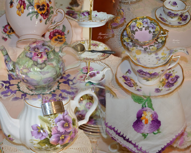 Last night I set the dining room table with a pansy theme. Last week I shared a personal sized cream and sugar and so I am also sharing a little Tuscan Pansy set today. I now have these 2 sets that are personal sized and here is one on my springtime table: