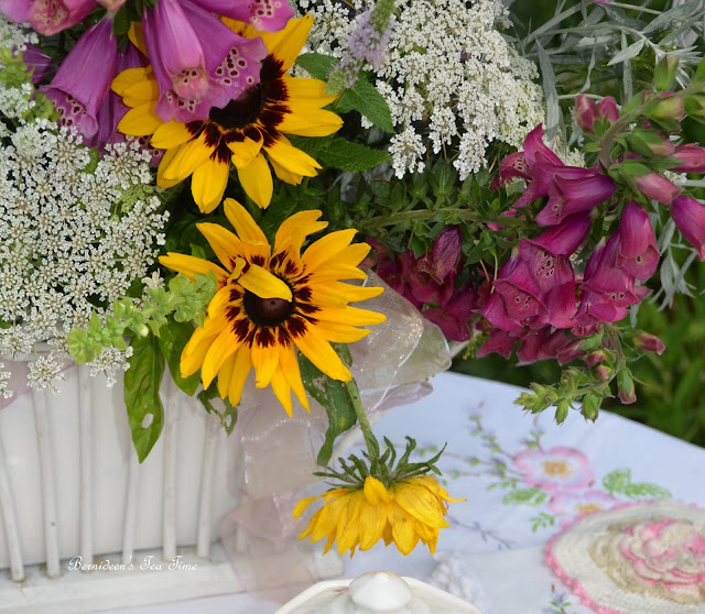 ReplyDeleteYour garden, the tea and the flower arrangement are so beautiful! The table linens are lovely too!