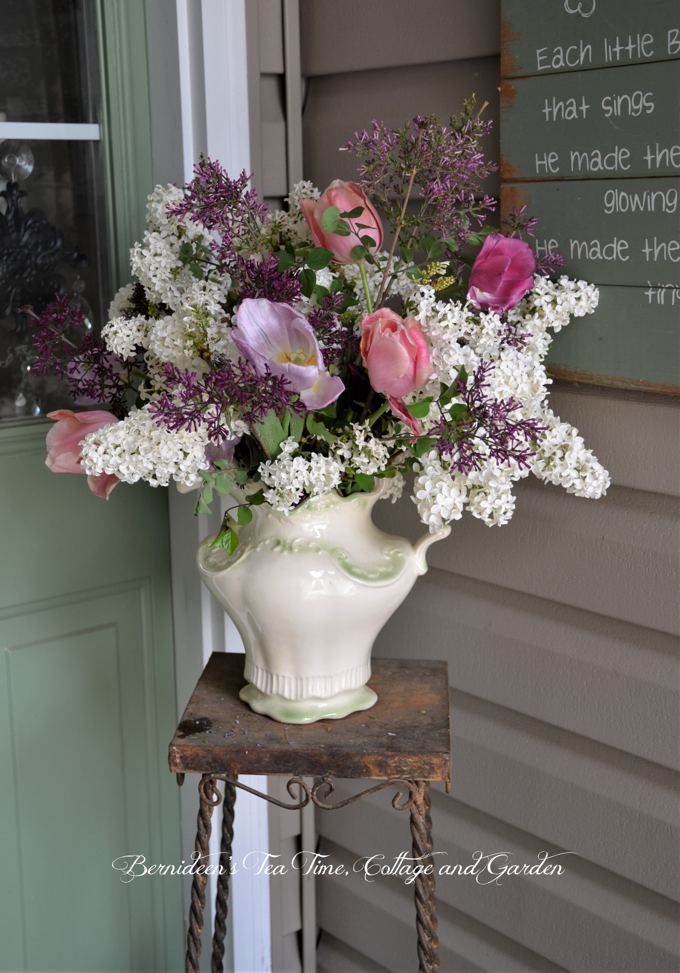 ReplyDeleteYour white lilacs really set off the tulips on the front porch. What a beautiful teapot find. Our cold nights are to be in the 30's clear through Thursday night. But things are greener and more colorful.